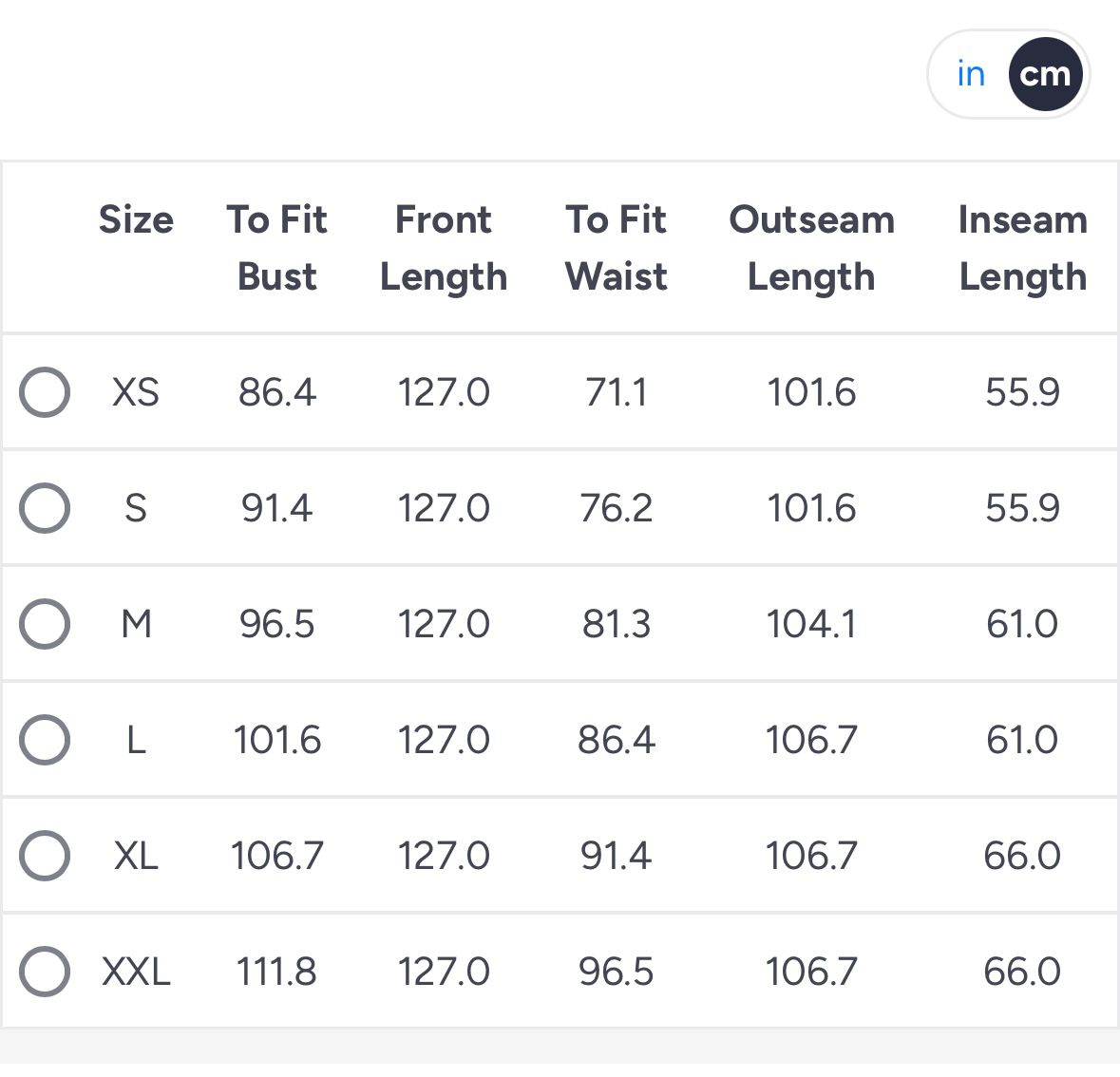 | Height | 4'10'', 4'11'', 4'6'', 4'7'', 4'8'', 4'9'', 5'0'', 5'1'', 5'10'', 5'11'', 5'2'', 5'3'', 5'4'', 5'5'', 5'6'', 5'7'', 5'8'', 5'9'', 6', 6'1'', 6'2'', 6'3'' |
