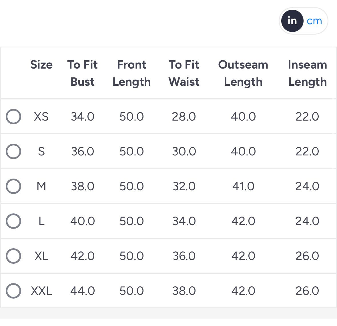 | Height | 4'10'', 4'11'', 4'6'', 4'7'', 4'8'', 4'9'', 5'0'', 5'1'', 5'10'', 5'11'', 5'2'', 5'3'', 5'4'', 5'5'', 5'6'', 5'7'', 5'8'', 5'9'', 6', 6'1'', 6'2'', 6'3'' |